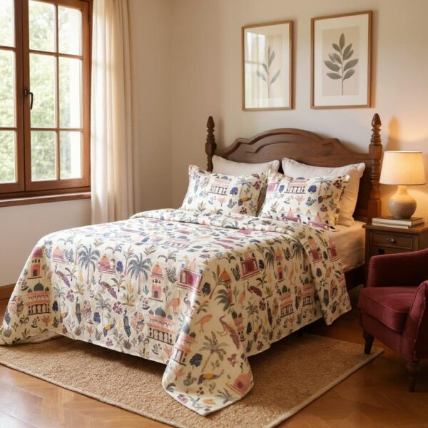 Regal Courtyard 5-Piece Cotton Bedsheet Set – Heritage Beige