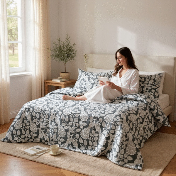 Peacock Grove 3-Piece Quilt Cover Set – Graphite Shadow