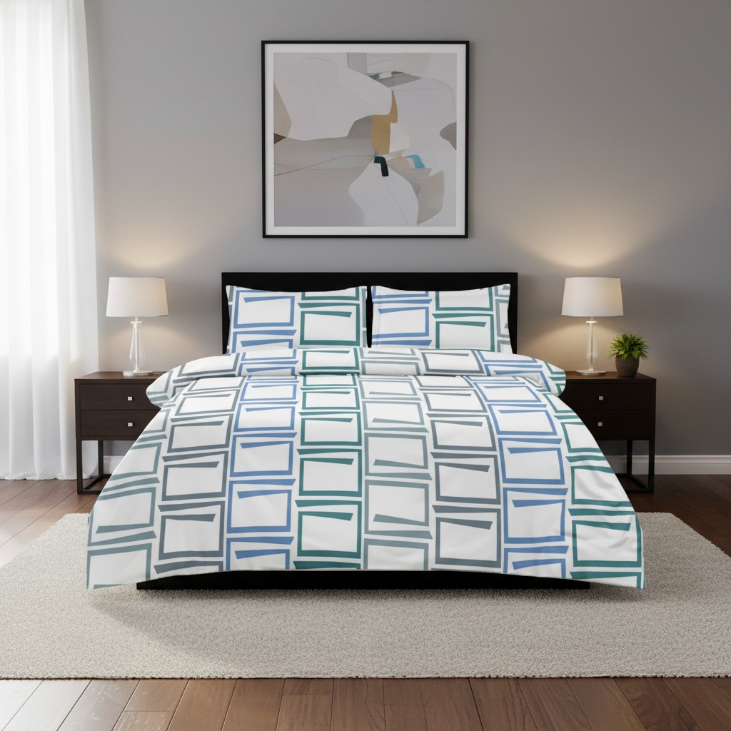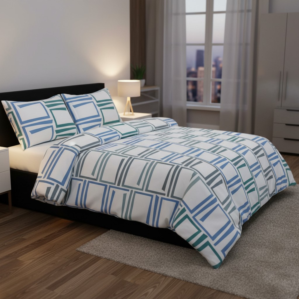 GeoFrame Luxe – 100% Cotton 250 Thread Count 7-Piece Bedsheet Set – Aqua Slate