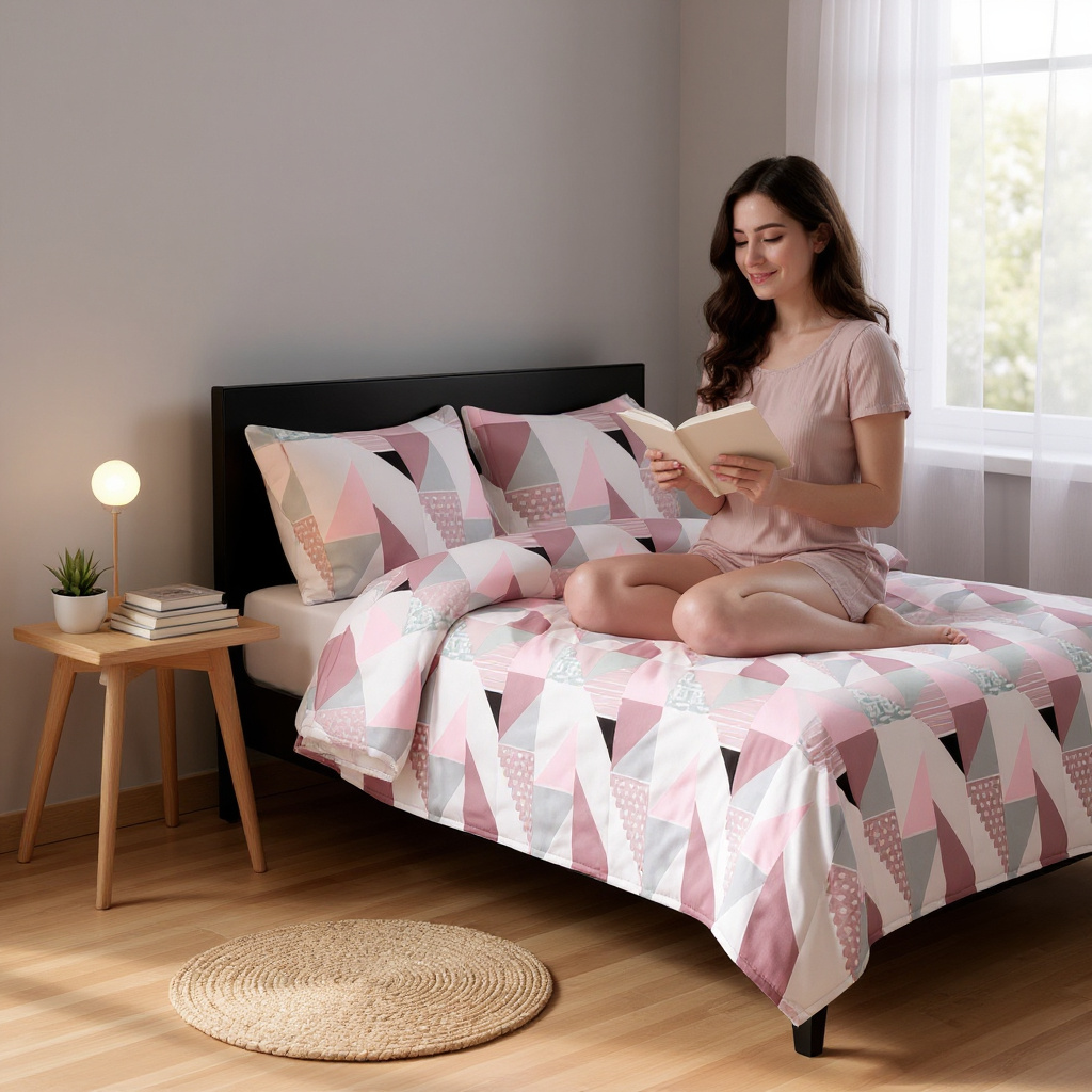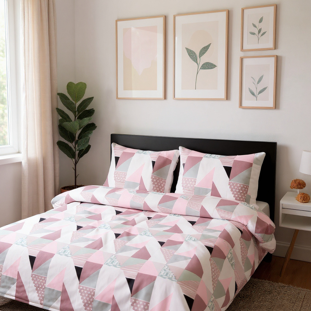 Prism Luxe – 100% Cotton 250 Thread Count 7-Piece Bedsheet Set – Blush Rose