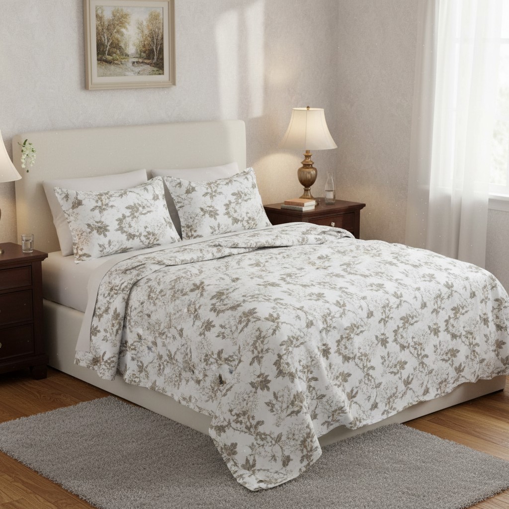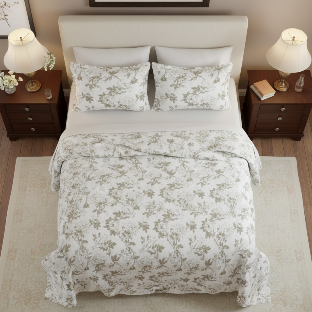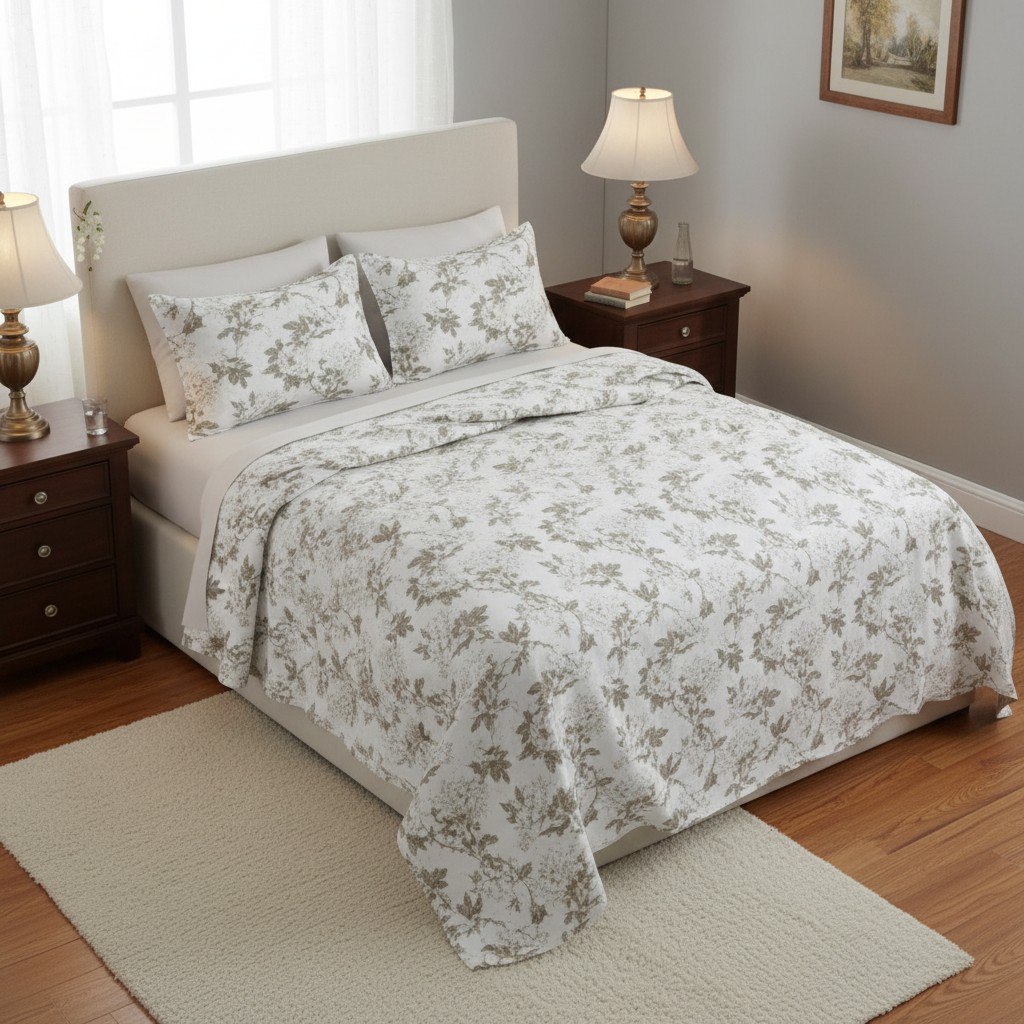 Vintage Ink Bloom – 100% Cotton 250 Thread Count 7-Piece Bedsheet Set – Dune Bloom